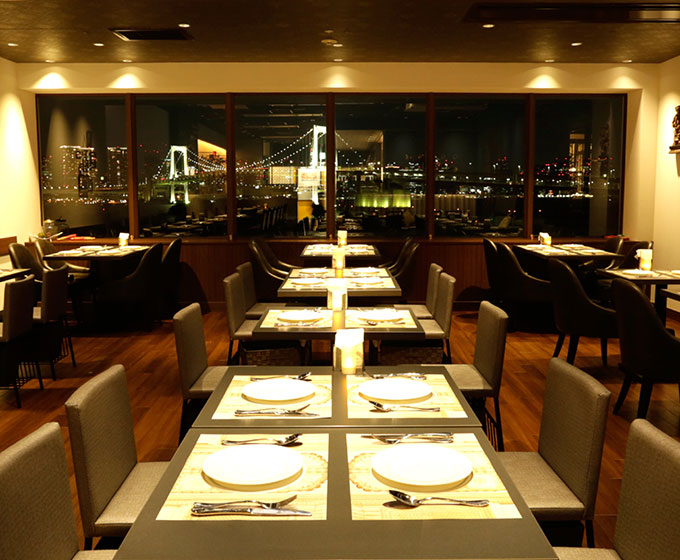 Fabulous tandoori grills, authentic curries, and North Indian delicacies paired with the finest wines and cocktails, overlooking the Rainbow Bridge and spectacular sea view of the Tokyo Bay.